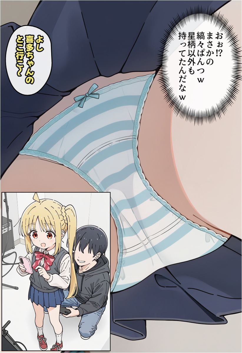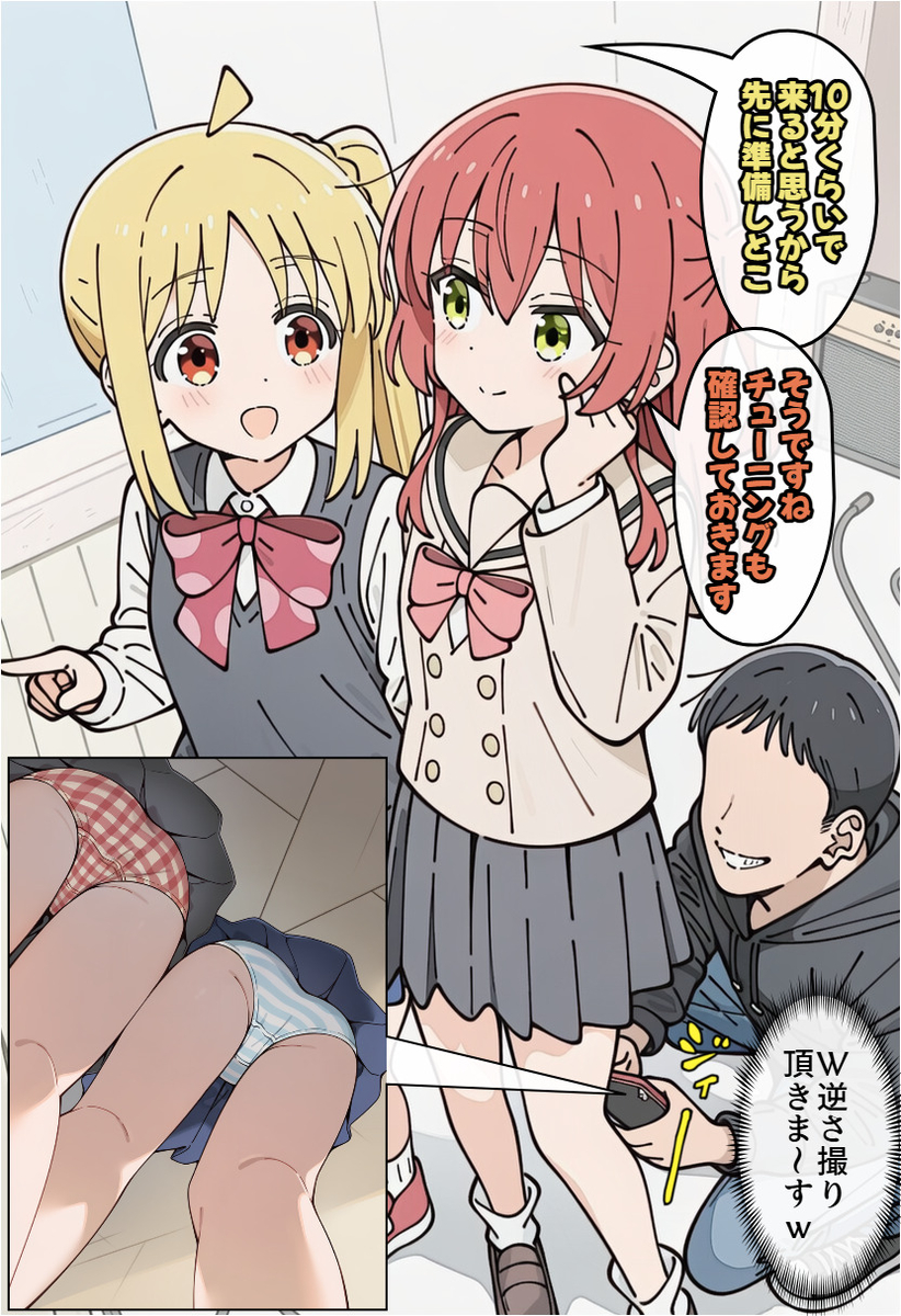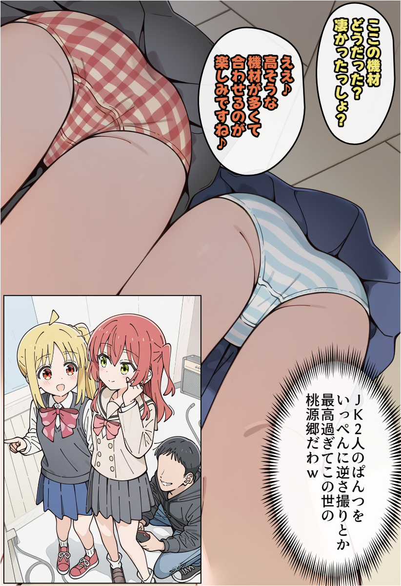 【ぼっち・ざ・ろっく!】虹夏ちゃんと喜多ちゃんがスタジオ店員にパンツを盗撮されまくってしまうエロ画像